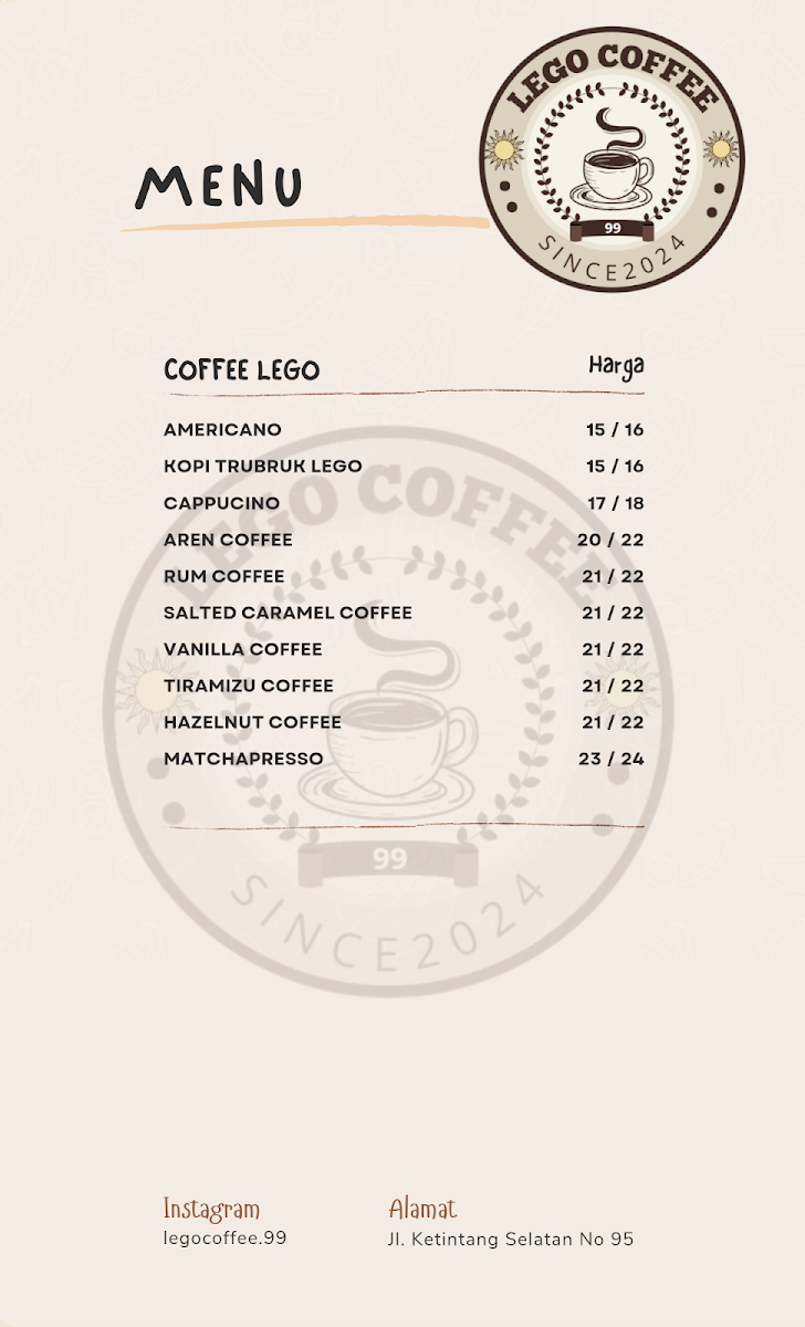 Welcome to Cafe Lego Coffee, nestled in the heart of Surabaya on Jl. Ketintang Sel. No.95. This cozy cafe is the perfect spot for those seeking a relaxed atmosphere paired with delicious offerings.